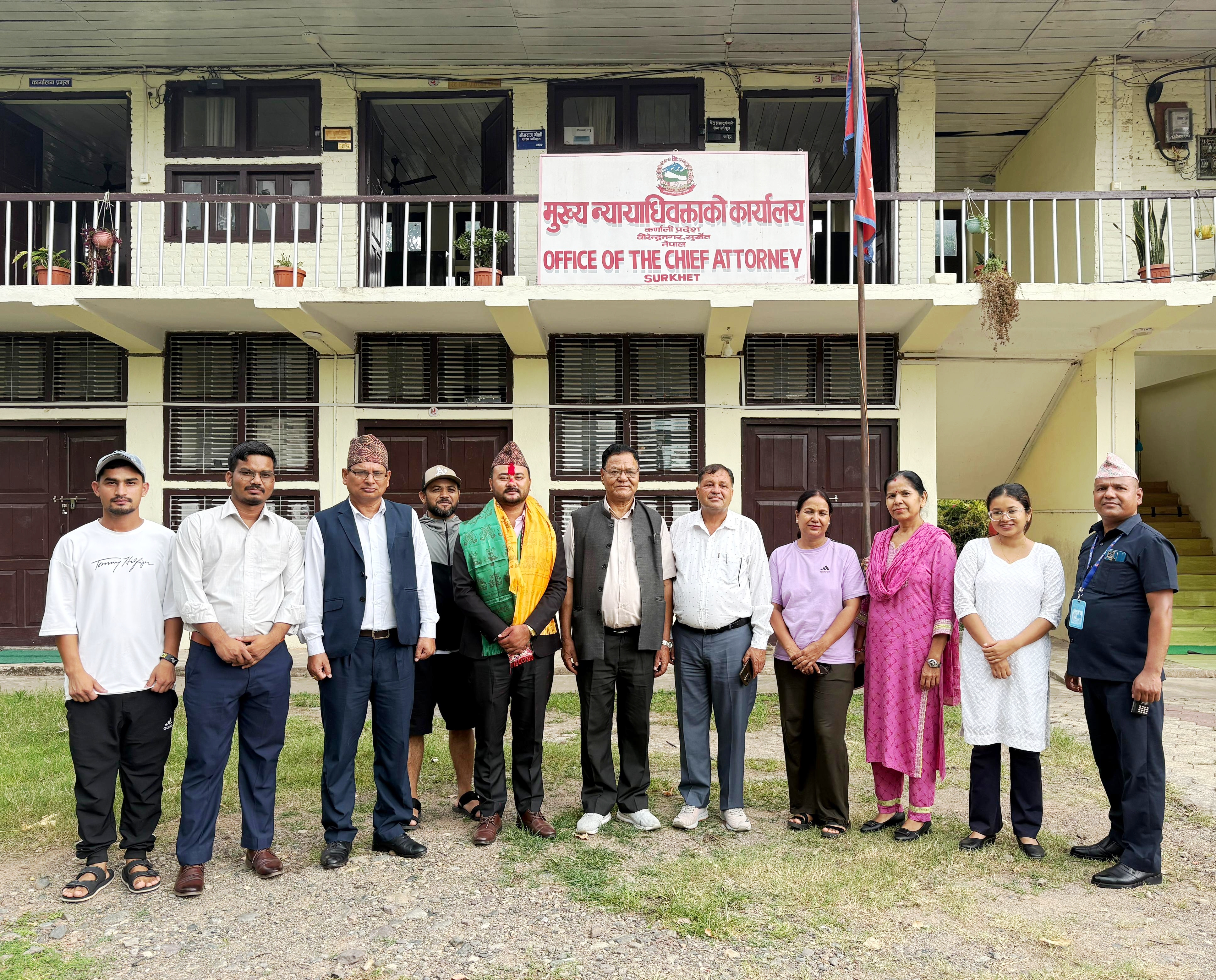 मिति २०८२।०३।०५ गते गुर्भाकोट नगरपालिका, सुर्खेतमा कानून निर्माण सम्बन्धी स्थानीय तहसँग अन्तरक्रिया सम्बन्धी कार्यक्रम सम्पन्न ।