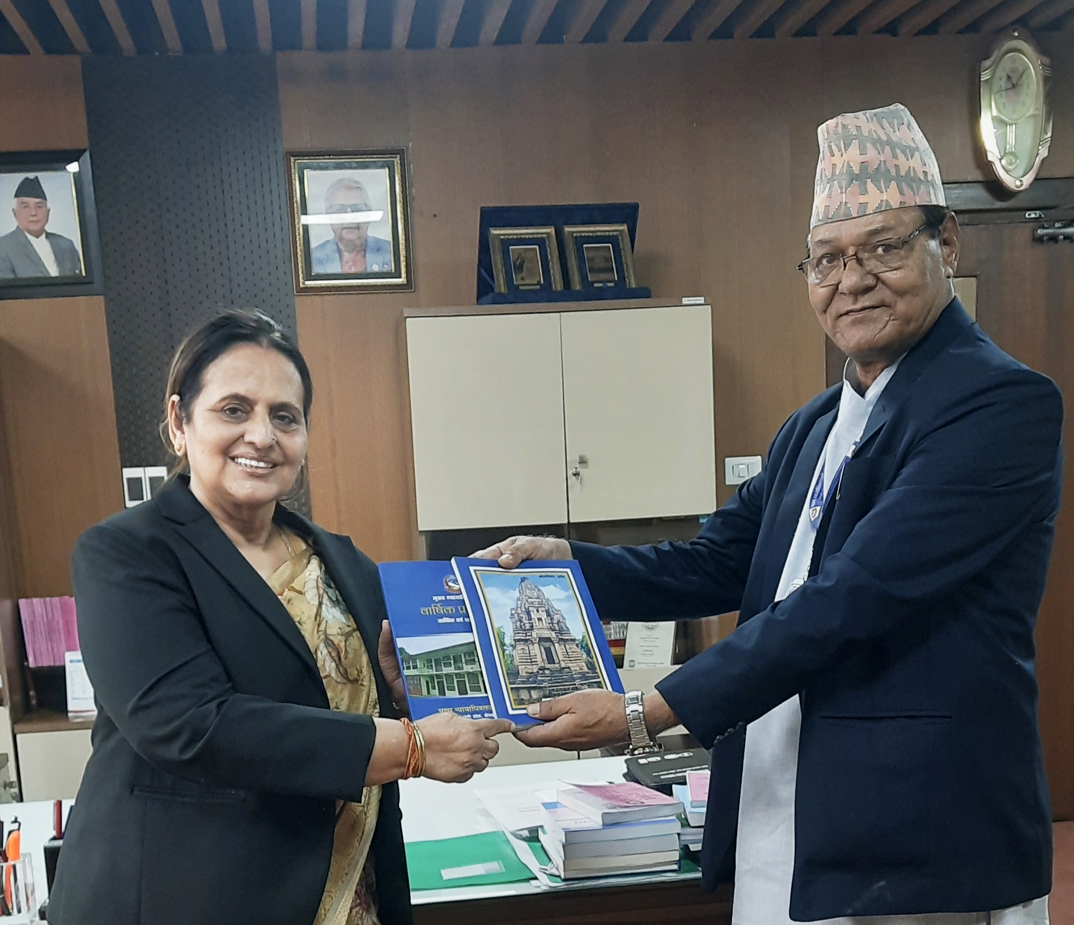 मिति २०८२/०७/१८ गते मुख्य न्यायाधिवक्ता माननीय श्री कृष्ण बहादुर हमाल ज्यूले माननीय महान्यायाधिवक्ता श्री सबिता भण्डारी ज्यू समक्ष यस कार्यालयको आ.व. २०८१/०८२ को वार्षिक प्रतिवेदन पेश गर्नुभएको छ।