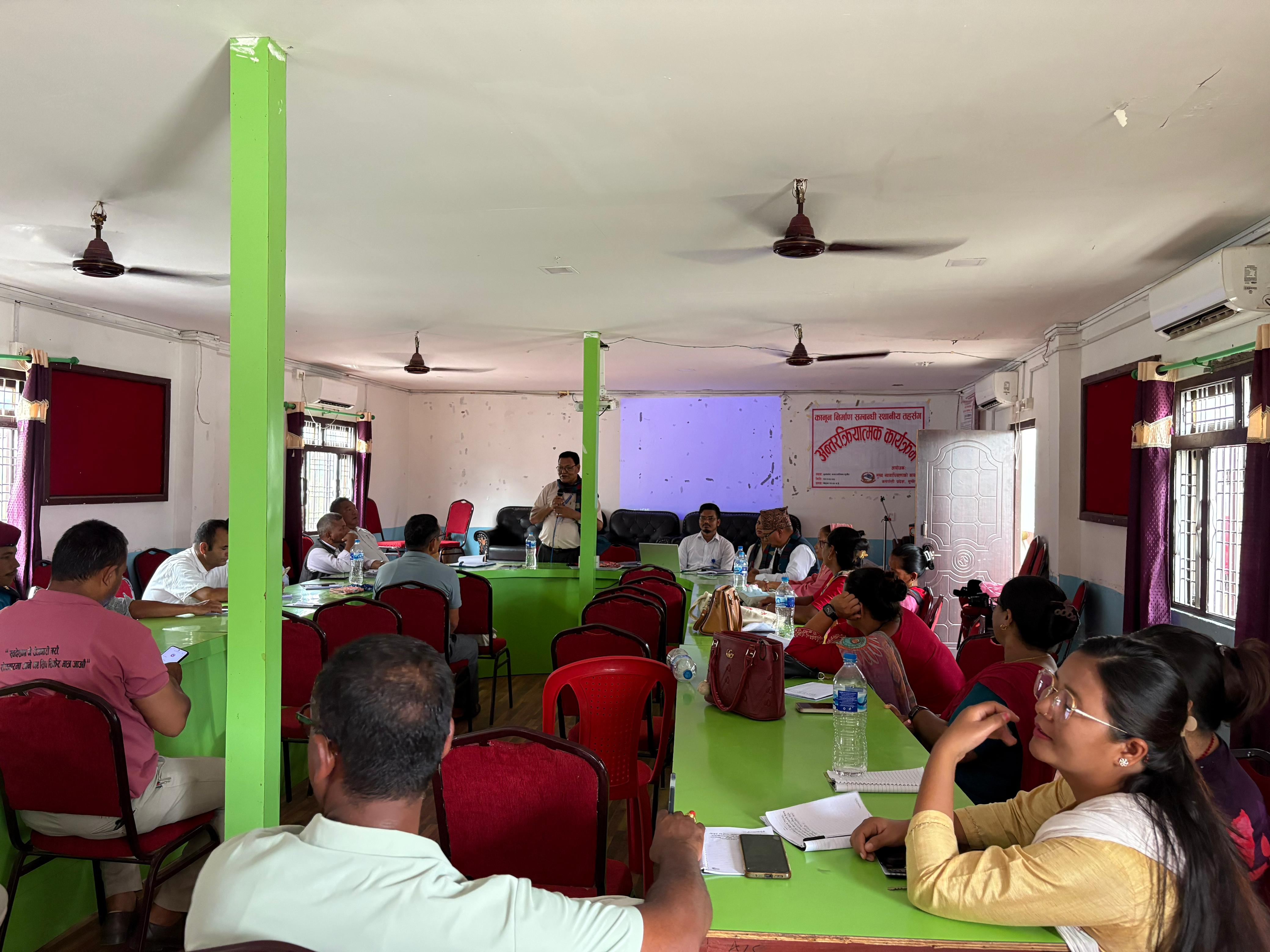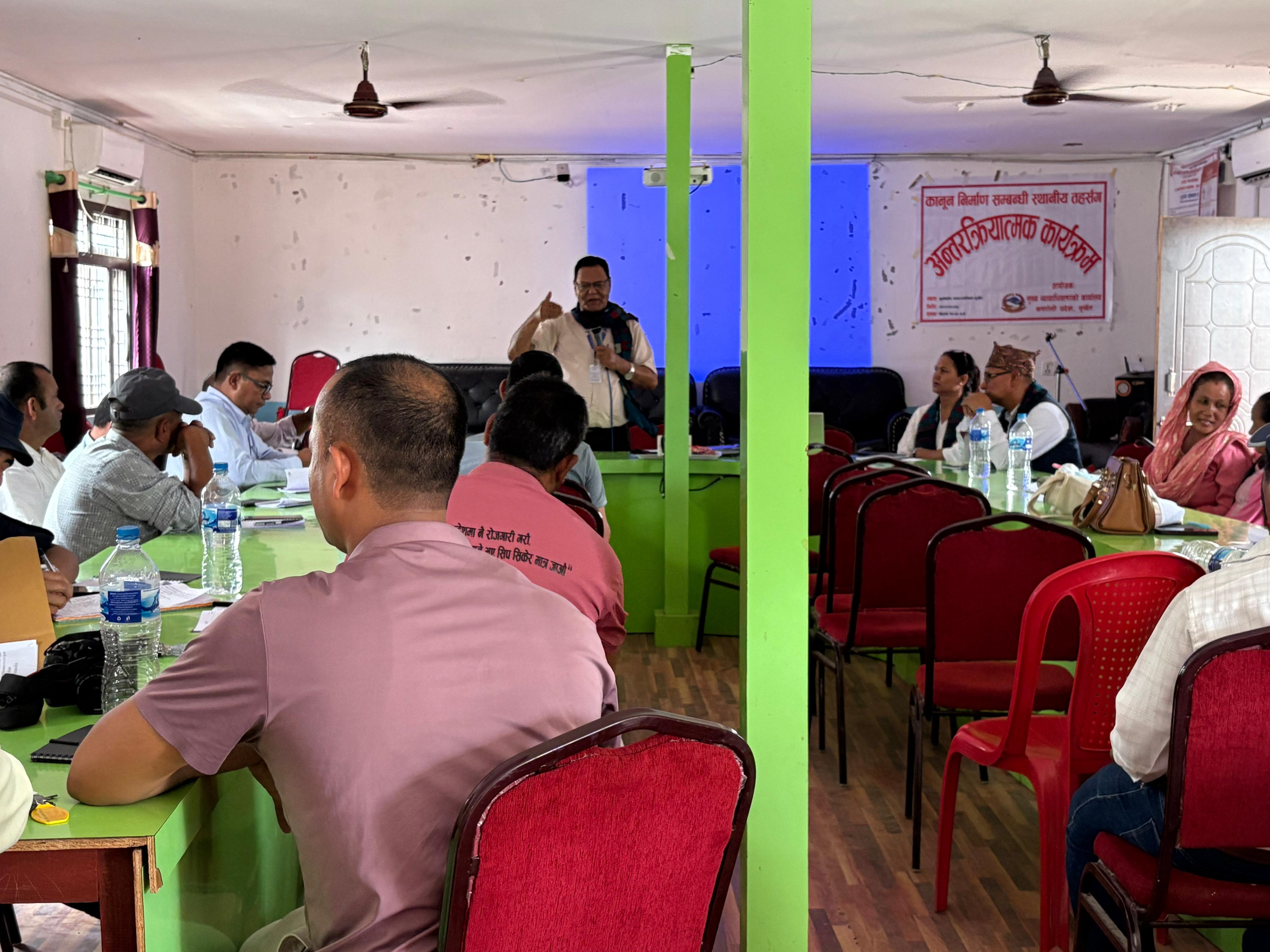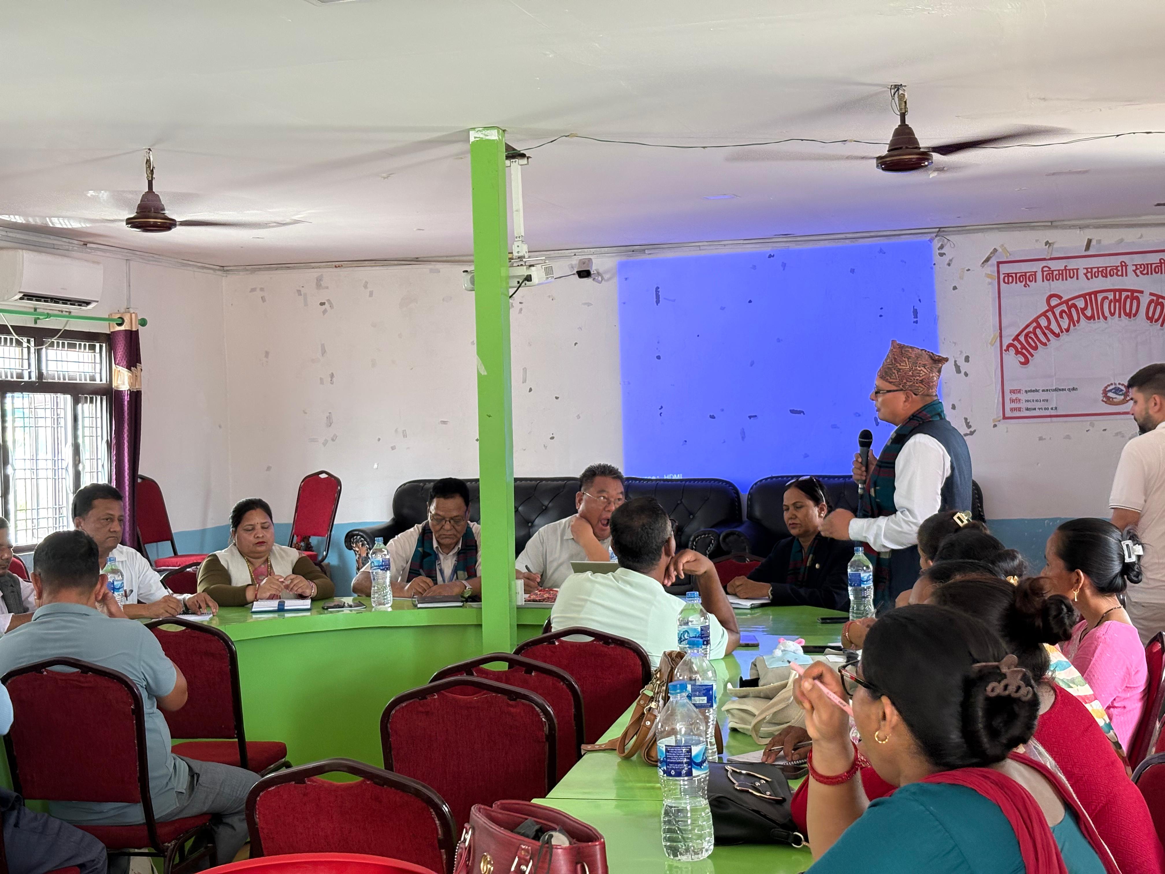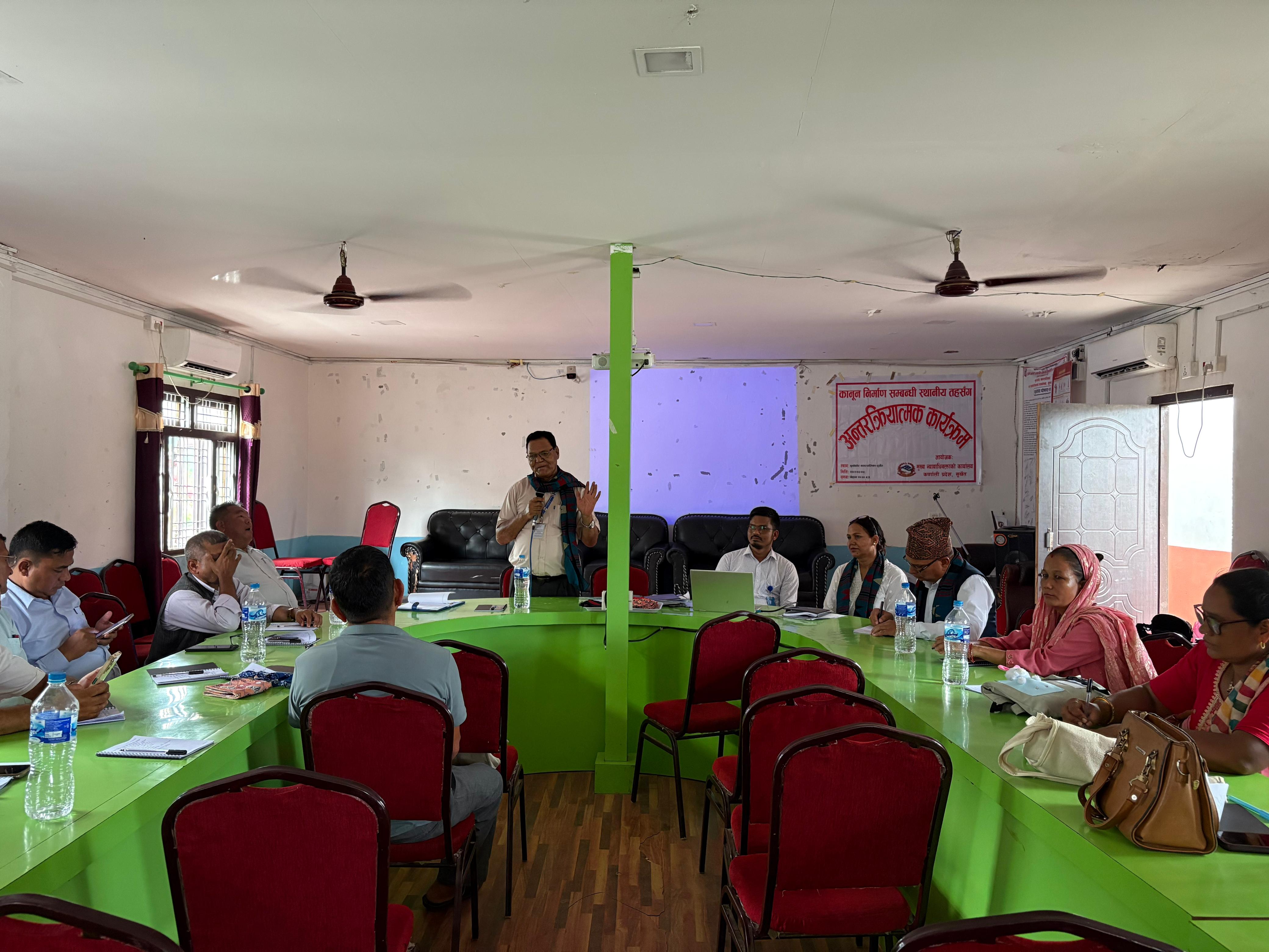 मिति २०८२।०३।०५ गते गुर्भाकोट नगरपालिका, सुर्खेतमा कानून निर्माण सम्बन्धी स्थानीय तहसँग अन्तरक्रिया सम्बन्धी कार्यक्रम सम्पन्न ।