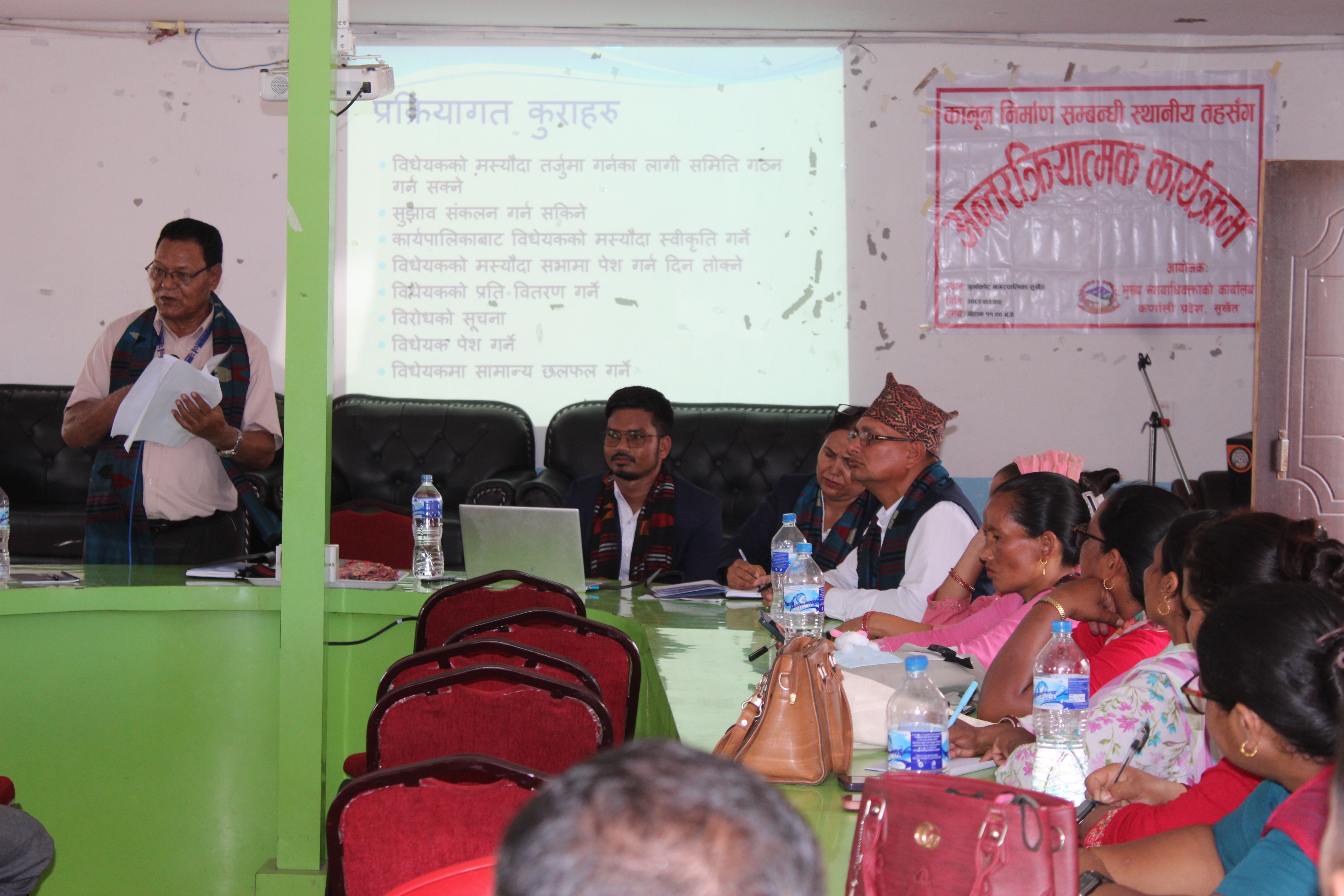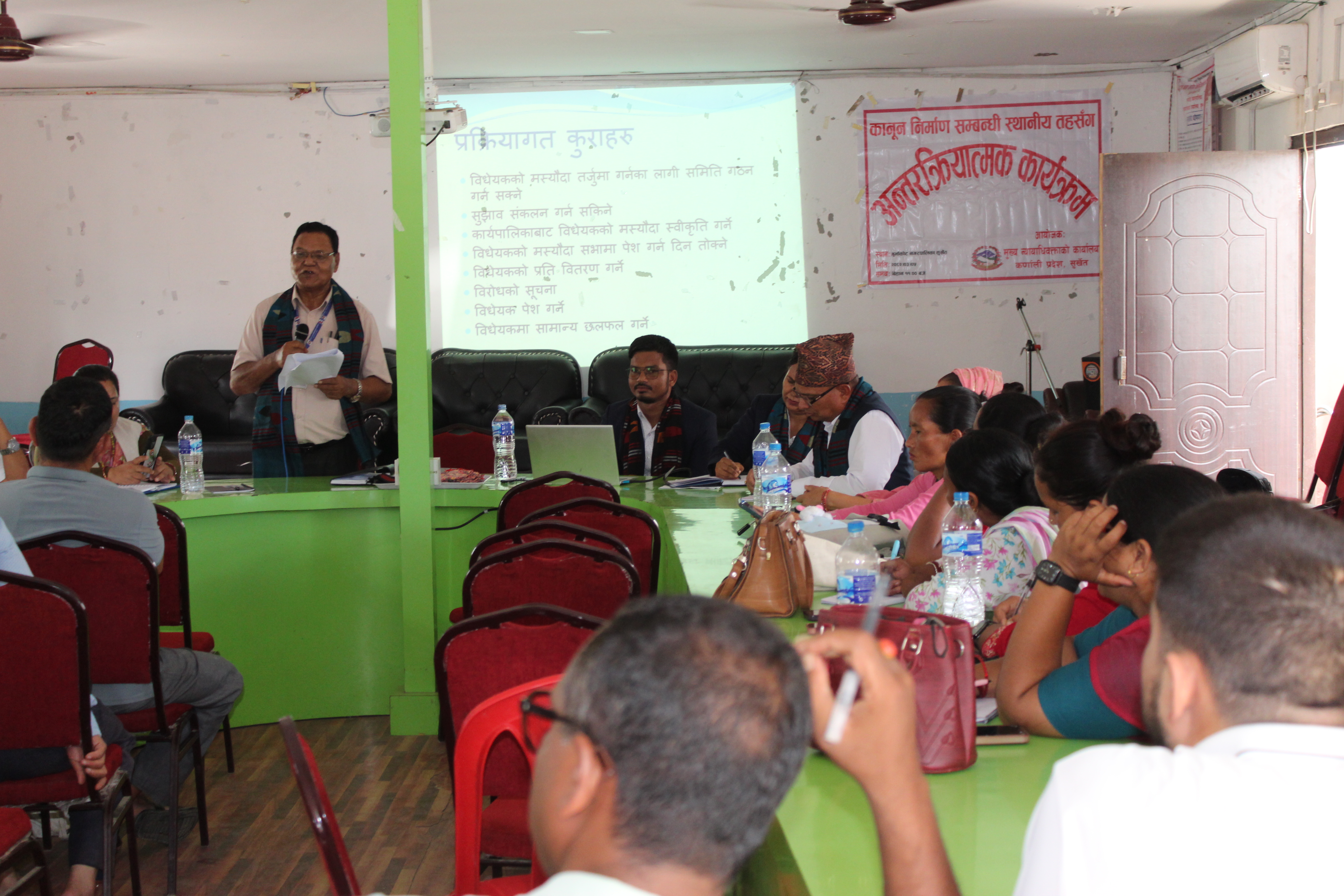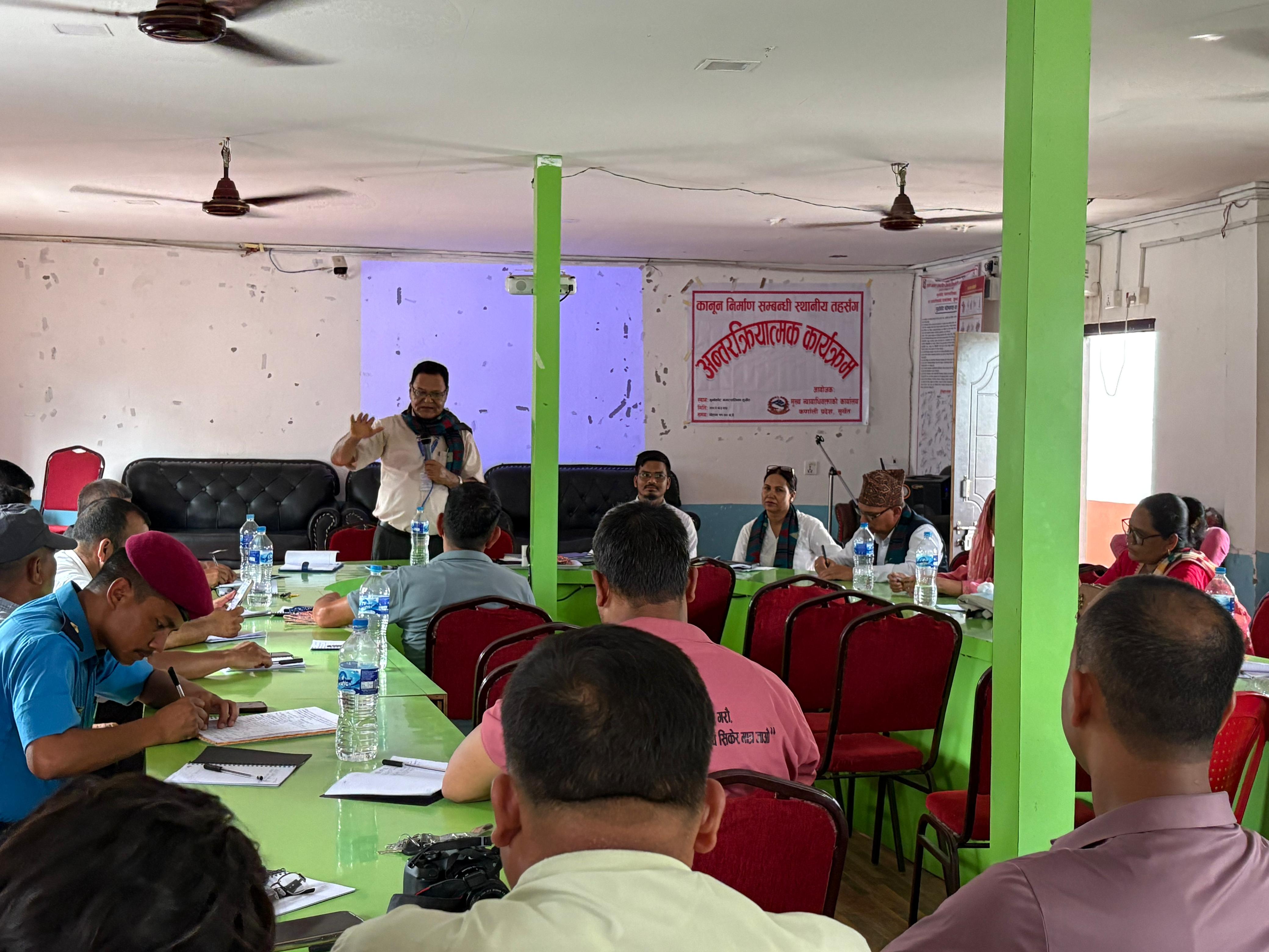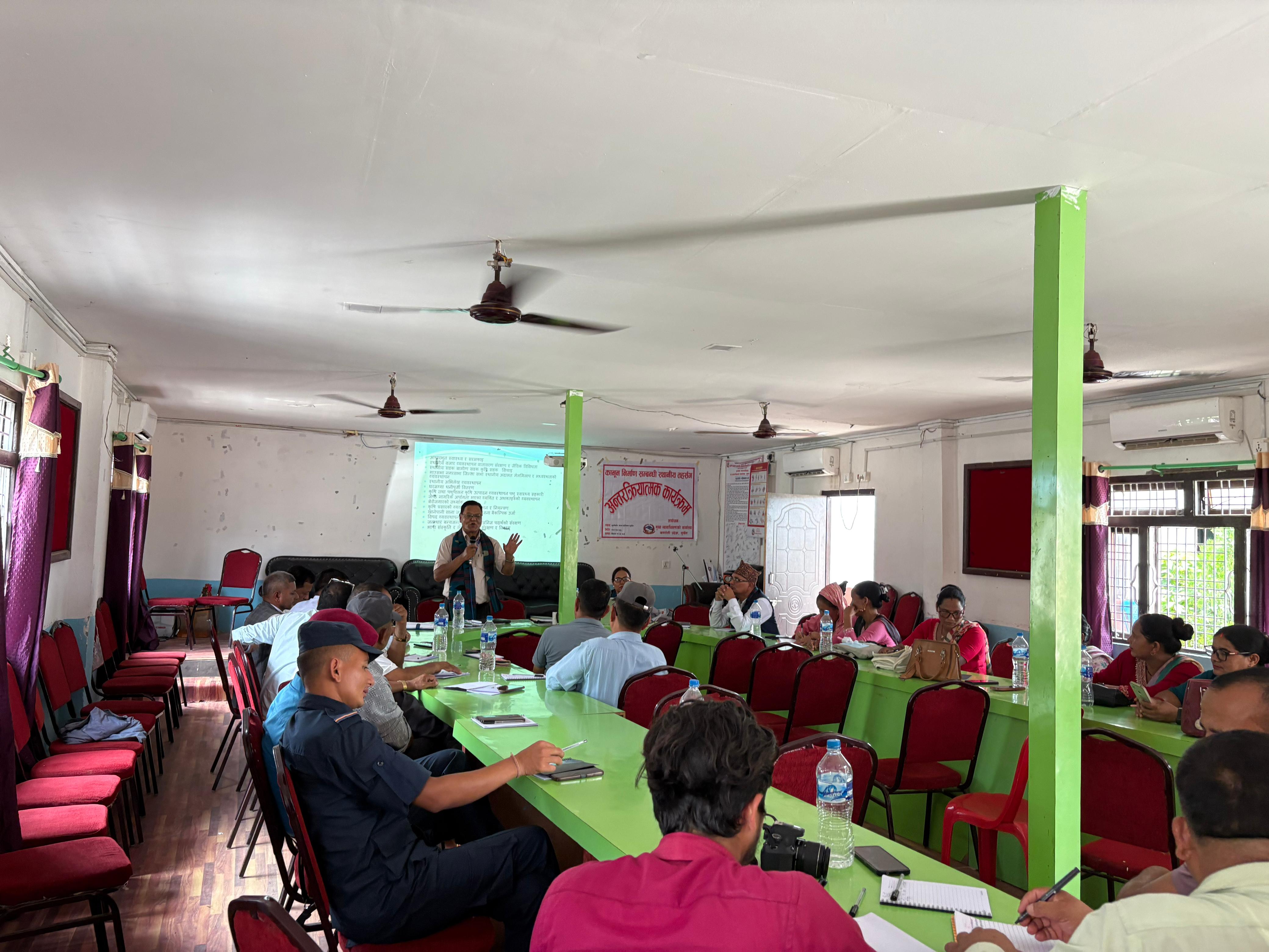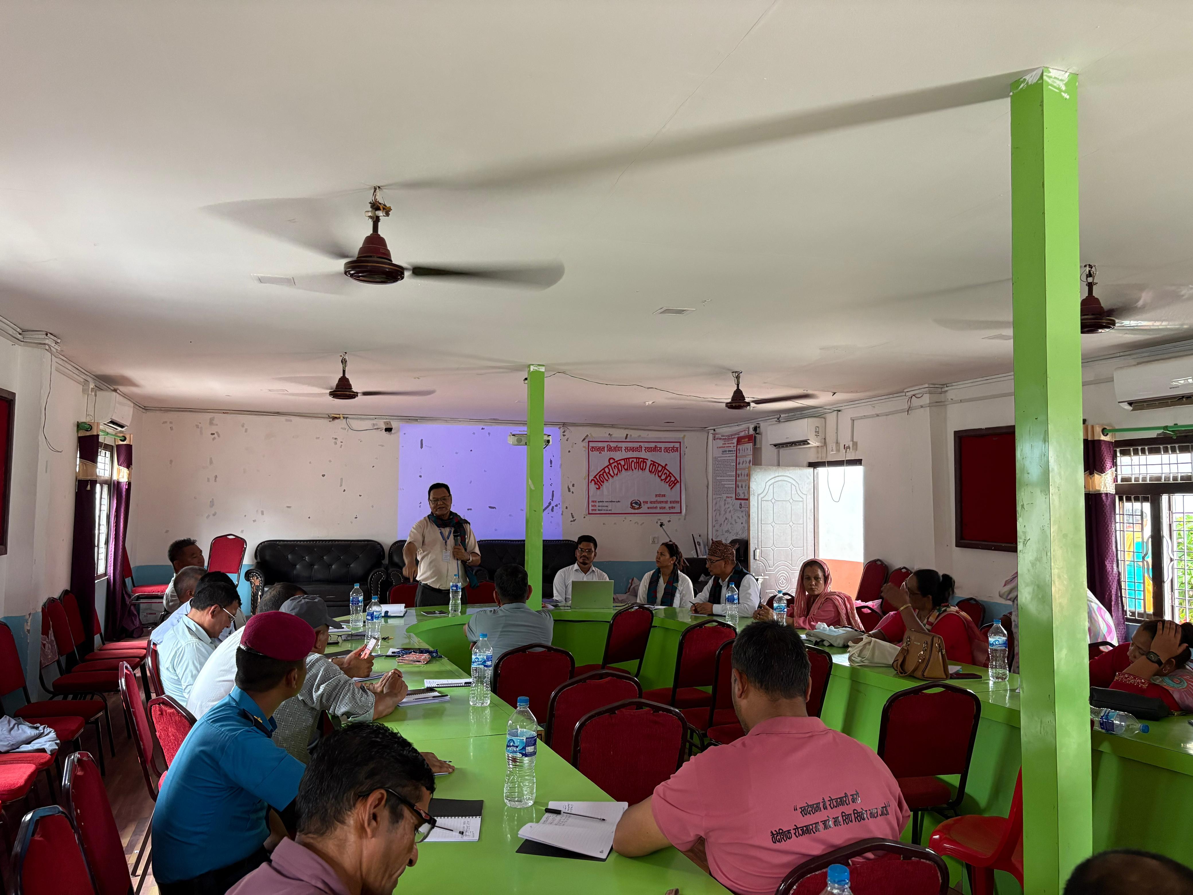 मिति २०८२।०३।०५ गते गुर्भाकोट नगरपालिका, सुर्खेतमा कानून निर्माण सम्बन्धी स्थानीय तहसँग अन्तरक्रिया सम्बन्धी कार्यक्रम सम्पन्न ।