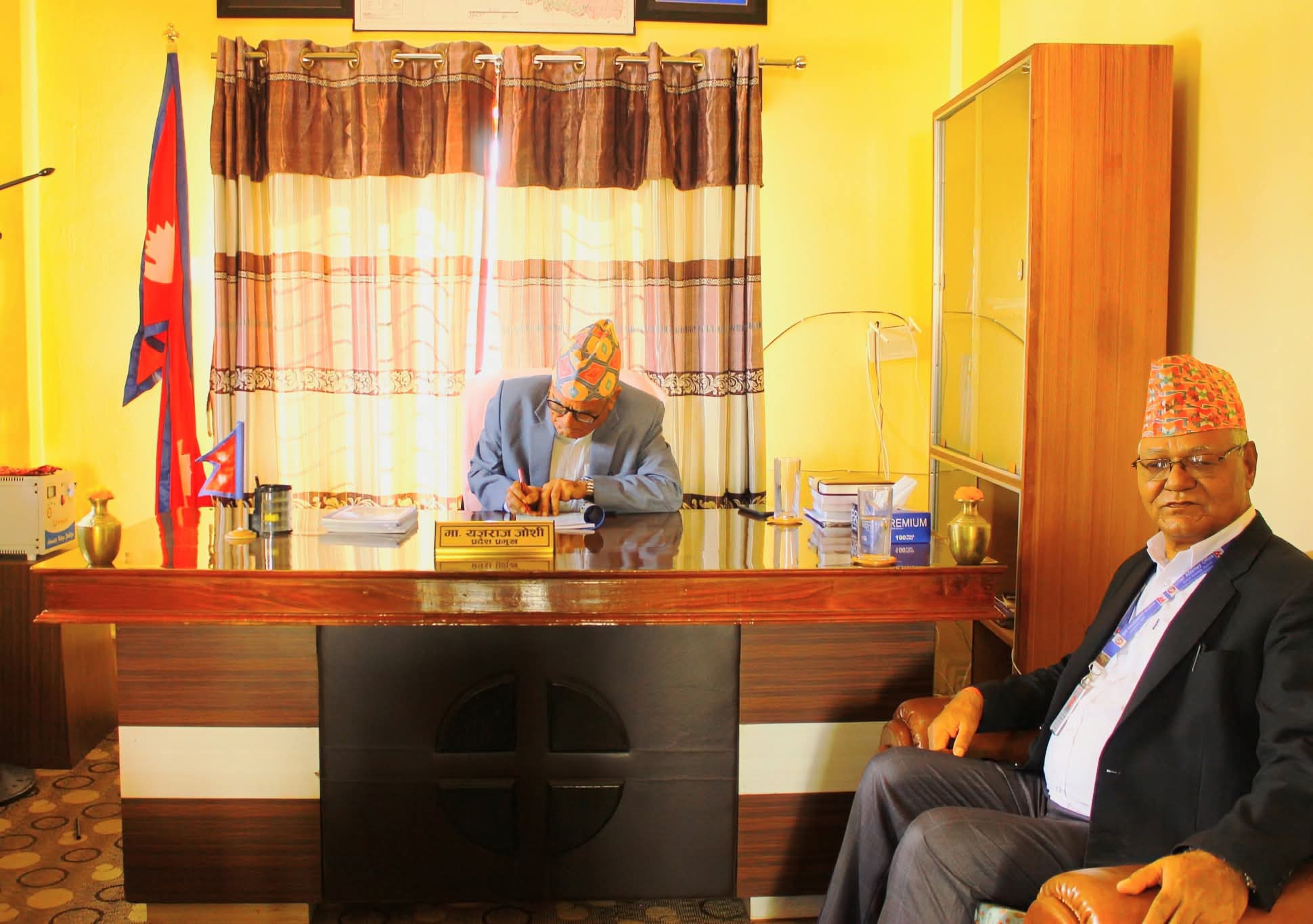 मिति २०८२/०६/२७ गते प्रमुख माननीय श्री यज्ञराज जोशी ज्यू समक्ष मुख्य न्यायाधिवक्ताको कार्यालय, कर्णाली प्रदेश, सुर्खेतको आ.व. २०८१/०८२ को वार्षिक प्रतिवेदन पेश गर्दै गर्दाको तस्वीरहरु