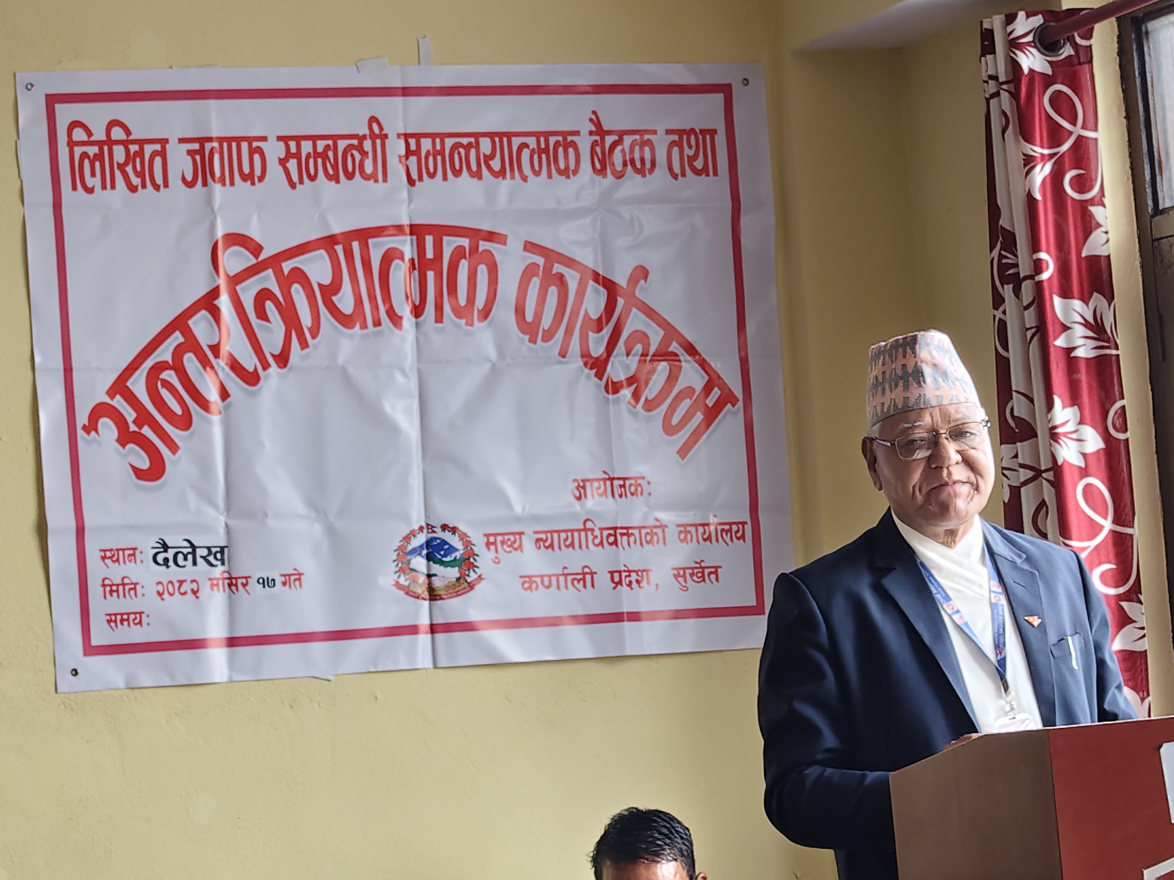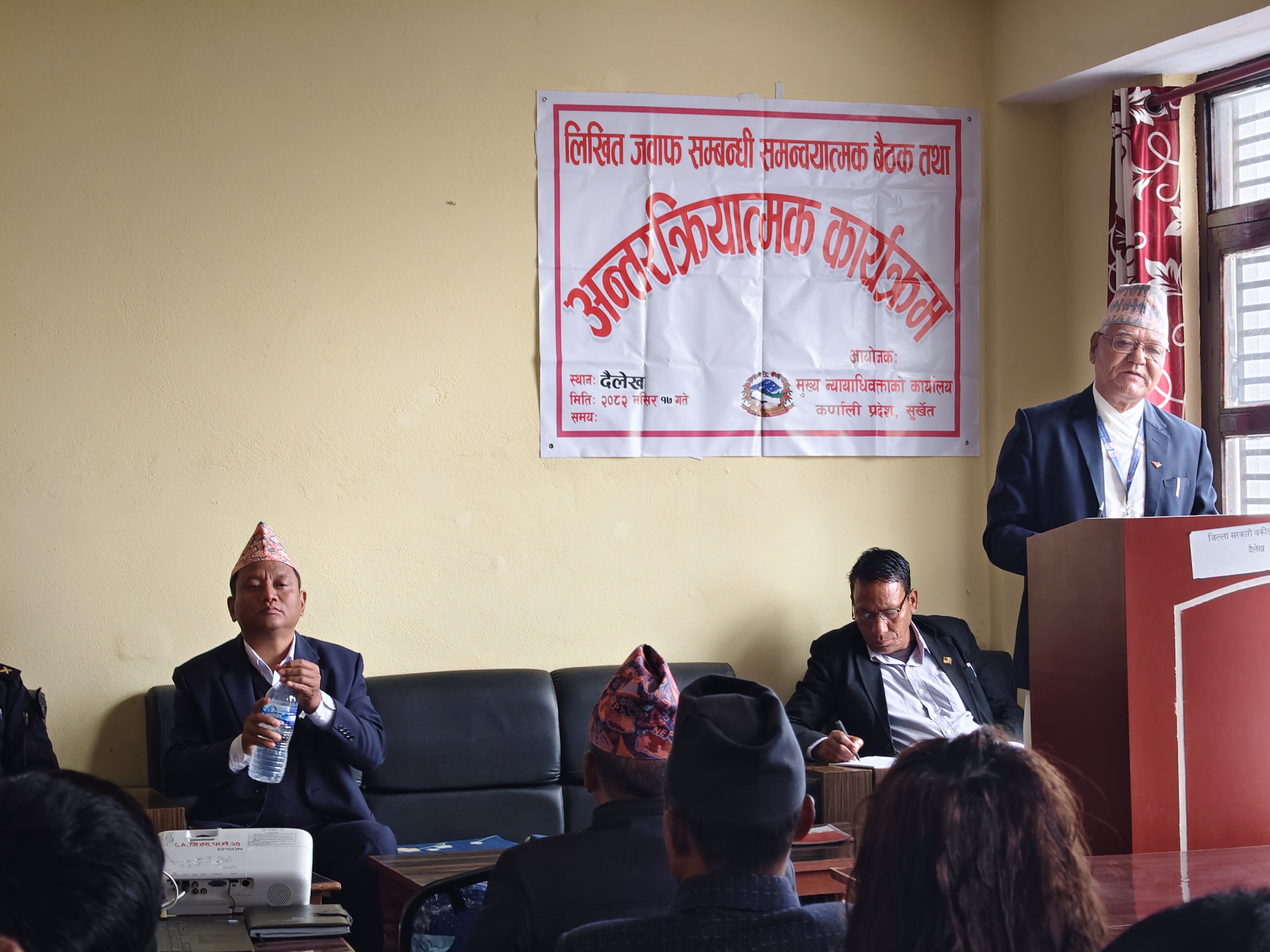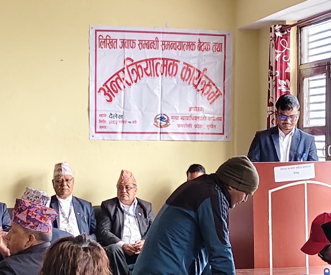 मिति २०८२/०८/१७ गते दैलेख जिल्लामा लिखित जवाफ सम्बन्धी समन्वयात्मक बैठक तथा अन्तर्क्रिया कार्यक्रम सम्पन्न ।।